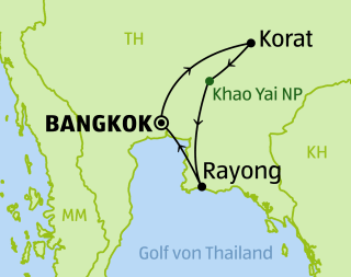 Tag 7 Khao Yai - Rayong • Nach dem Frühstück verlassen Sie Khao Yai. Die Fahrt führt über Bangkok an die Küste nach Rayong. Mittagessen unterwegs in einem lokalen Restaurant. Am späten Nachmittag erreichen Sie Ihr Strandresort und können den Rest des Tages zur freien Verfügung.