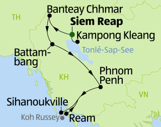 Tag 7 Banteay Chhmar - Battambang • Nach dem Frühstück geht es per Ochsenkarren oder Fahrrad vom kleinen Ta Prohm Tempel durch das Dorf zum Soiries du Mekong Silk Center, das 2001 eröffnet wurde. Es ist eine Schule für Seidenweberei, die gegründet wurde, um Frauen und ihre Familien im Dorf zu unterstützen. Heute arbeiten in Banteay Chhmar rund 100 Einwohner für Soiries du Mekong. Mit diesem Projekt können die Familien des Dorfes ihr Einkommen verbessern. Eine Fahrt mit einem Kuyun (Traktor) geht durch Reisfelder zum Banteay Torp Tempel, wo Sie Ihr Picknick Mittagessen haben. Überlandfahrt nach Battambang. In Battambang, der zweitgrößten Stadt des Landes, hinterließen die Franzosen wohl ihre schönste koloniale Architektur in Kambodscha. Sie entdecken die Stadt mit ihren kleinen Gassen und Marktplätzen bei einem Spaziergang. In der Altstadt Battambangs finden sich auch zahlreiche kleine Galerien lokaler Künstler.