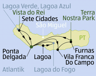- Kurstadt Furnas, deren Umgebung durch die geothermischen Vorgänge unter der Erdoberfläche bekannt ist