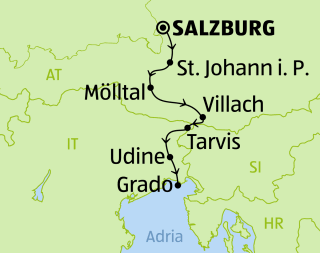 Wussten Sie, dass der Alpe-Adria-Radweg ca. 410 Kilometer lang ist und dieser vom österreichischen Salzburg in die italienische Gemeinde Grado an der Adria führt? Bei dieser Tour lernen Sie die Strecke kennen. Sie starten im kaiserlichen Salzburg und erkunden von dort aus berühmte Orte wie die Keltenstadt Hallein. Entlang der Golling fahren Sie bis nach St. Johann weiter. Am nächsten Tag radeln Sie frisch und munter weiter bis in den Kurort Bad Gastein. Ab Böckstein bringt Sie die Bahn auf die andere Seite der Alpen ins Mölltal. Immer dem Fluss entlang geht die Tour bis ins Drautal und weiter nach Villach. Noch ein paar Tritte ins Pedal und schon sind Sie in „Bella Italia“ angekommen. Von Tarvis fahren Sie über den gut ausgebauten Radweg weiter nach Udine, bevor Sie zu Ihrem Ziel in Grado gelangen. Hier können Sie die Seele baumeln lassen und es sich am kilometerlangen Sandstrand gemütlich machen.