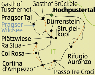 Tag 4 Plätzwiese – Knappenfusstal – Gemärk – Cortina d'Ampezzo (Variante 1: Dauer ca. 1,5 – 2 Std., Aufstieg 0 m, Abstieg ca. 460 m oder Variante 2: Dauer ca. 6 – 7 Std., Aufstieg ca. 610 m, Abstieg ca. 1.300 m) • Sie durchwandern die Plätzwiese und steigen durch das Knappenfusstal hinab ins Gemärk – der Landesgrenze zwischen Südtirol und der Provinz Belluno. Von dort bieten sich Ihnen zwei Möglichkeiten an: entweder der direkte Weg nach Cortina d'Ampezzo mit den öffentlichen Verkehrsmitteln oder die etwas längere Variante zur Hütte Ra Stua und unterhalb der Col Rosa nach Cortina d'Ampezzo. Es gibt unterwegs weitere Abkürzungsmöglichkeiten. Übernachtung in Cortina d'Ampezzo.