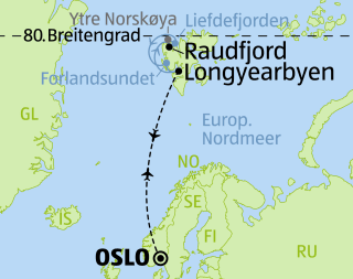Tag 2 Oslo – Longyearbyen • Früh am Morgen Transfer zum Flughafen Oslo und Weiterflug nach Longyearbyen. Ankunft in Longyearbyen, dem Verwaltungszentrum von Spitzbergen, gelegen auf der größten Insel des Svalbard-Archipels. Am frühen Abend fährt das Schiff hinaus in den Isfjord, wo Sie mit etwas Glück die ersten Zwergwale sichten können.