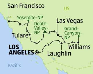 Tag 8 Las Vegas – Tulare (ca. 620 km) • Weiter geht es in die Geisterstadt Calico in der Mojave Wüste. Fahrt durch das San Joaquin Valley, eines der größten Agrargebiete in den USA, wo unter anderem Trauben, Nektarinen, Pflaumen, Pfirsiche und Tomaten angebaut werden. Übernachtung in Tulare.