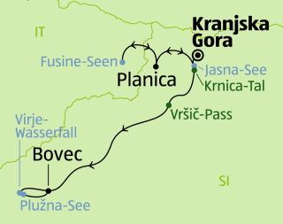 Tag 1 Anreise – Wanderung (Dauer ca. 3 – 4 Std.) • Individuelle Anreise nach Kranjska Gora. Heute empfiehlt sich die Wanderung ins Krnica-Tal. Ein schöner Spaziergang entlang des Flusses Pišnica ist fantastisch. Sie erreichen die Hütte, wo Sie ein leckeres traditionelles slowenisches Essen genießen können (fakultativ, zahlbar vor Ort). Auf dem Rückweg können Sie ein Bad im Jasna-See nehmen. Übernachtung in Kranjska Gora.