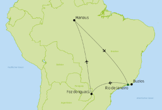 - Inlandsflüge (Economy Class) Rio de Janeiro – Foz do Iguaçu, Foz do Iguaçu – Manaus, Manaus – Rio de Janeiro inkl. 23 kg Gepäck (Umsteigeverbindung möglich)