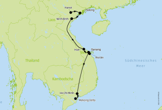 Tag 8 Hue - Danang - Hoi An • Am Morgen besuchen Sie das Grab des Kaisers Tu Duc, eine der schönsten Stätten in Hue. Es wurde zu Lebzeiten des Herrschers in einem kleinen Tal, etwa 8 Kilometer von Hue entfernt, errichtet. Das Grabmal ist ein Musterbeispiel für traditionelle vietnamesische Kunst und Architektur. In einer ruhigen und friedlichen Atmosphäre sind etwa 50 Gebäude über das Grabmalareal verstreut.Am Nachmittag fahren Sie mit dem Zug von Hue in die Stadt Danang (Dauer ca 2,5 Std) über den legendären Hai-Van-Pass (Wolkenpass). Die Fahrt führt Sie über die Bucht und bietet Ihnen ein unvergleichliches Panorama. Es ist eine der bekanntesten und beliebtesten Bahnstrecken in Südostasien, auch bekannt unter dem Namen "Wiedervereinigungs Express". Nach Ihrer Ankunft in Danang werden Sie vom Fahrer am Bahnhof abgeholt und fahren nach Hoi An zum Einchecken. Übernachtung im Hotel in Hoi An.