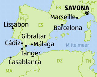 Tag 1 Individuelle Anreise nach Savona/Italien. Einschiffung und Beginn der Kreuzfahrt um 16:30 Uhr.